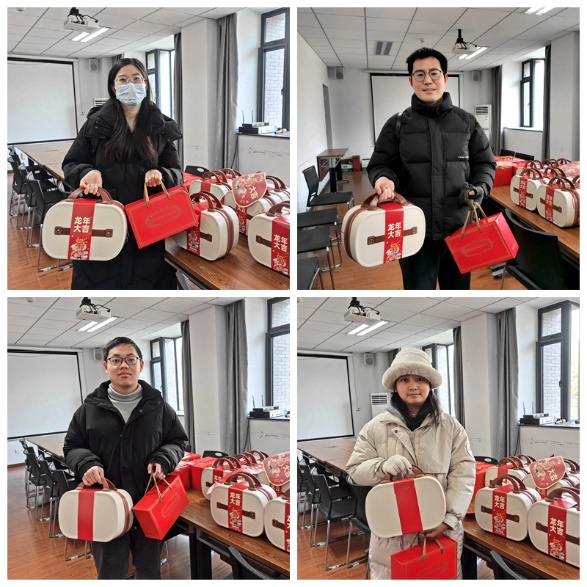2月9日除夕当日,受院领导委托,av片 学工组为留校学生准备了丰盛的礼盒,学院党委副书记任玲玲对留校同学做亲切慰问。任书记逐个询问了留校学生的假期安排,并叮嘱大家要提高消防安全意识。对于本科生同学,任书记鼓励他们在保证安全的前提下,趁着近期的好天气多出门踏青;对于硕士生同学,任书记深入浅出地进行了就业指导,尤其要求毕业班同学要平衡好求职与学习的关系;对于博士生同学,任书记充分肯定了他们的留校科研攻关的精神,并勉励要加强营养,劳逸结合。