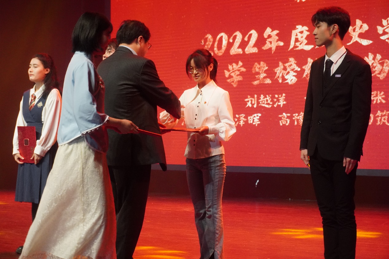 此次晚会上,av片 院长张生、党委书记赵清为代文泽、刘越洋、刘俊甫、张芊、秋香、冷婧、李泽晖、高豫来、彭韵筑、李书剑同学以及2012届校友、中国青年五四奖章获得者袁辉颁奖。他们踔厉奋发,积极参与社会实践与志愿服务,将个人理想与国家命运归流,为吾辈青年之榜样。