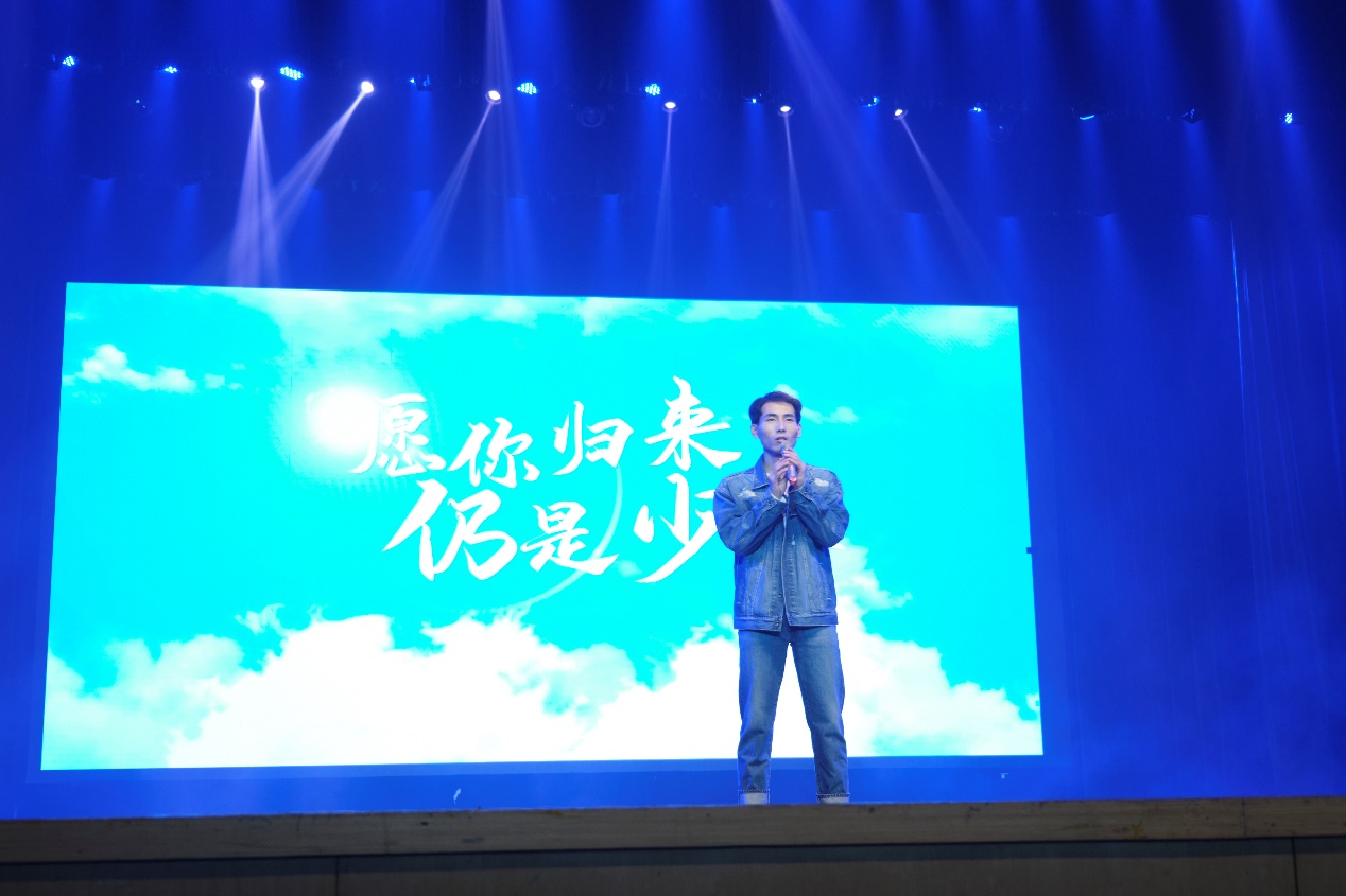 在晚会的末尾,李逸凡等同学合唱《我和我的祖国》。歌声中流淌出对党、对祖国的美好祝福,凝聚起全体观众的爱国情。