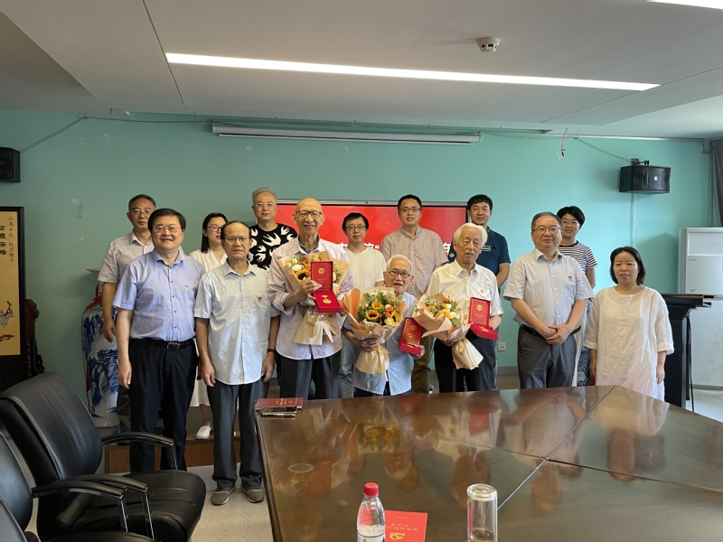 6月22日,av片 “光荣在党50年”纪念章颁发仪式在av片 举行。曹廷清、孙应祥、张宪文三位“光荣在党50年”纪念章获得者、院党委书记赵清、院党委副书记、院长张生、院党委副书记任玲玲、全体党委委员、教职工党支部书记和党员代表参加了仪式。