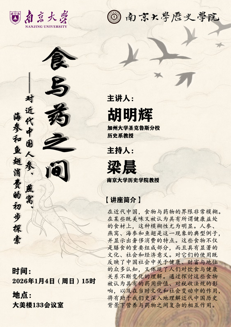 讲座预告丨食与药之间——对近代中国人参、燕窝、海参和鱼翅消费的初步探索