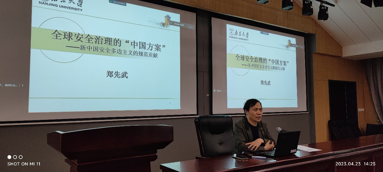 之后,校党委理论讲师团成员、av片 郑先武教授为全体师生党员带来主题为“全球安全治理‘中国方案’”的党课。郑先武老师从时代性、历史性、创造性三个角度着眼,分析了全球权力大转移的周期、目前新的动荡变革期、地缘政治回归和区域问题突显和中美全面竞争日益加剧的时代属性;接着郑老师从历史性角度分析了新中国安全多边主义的演进历程,从传统型和平外交到务实型发展外交再演进到引领型总体外交,介绍了“一带一路”倡议、丝路基金的设立、澜湄国家共同体建设以及促进沙特与伊朗和解等行动引领方面的重大成就;最后,郑老师从人类命运共同体开始,从“新型国际关系”、总体国家安全观、“亚洲安全观”发展到习近平总书记2020年在博鳌亚洲论坛上首次提出“全球安全倡议”,创造性地提出了应对世界之变、时代之变和历史之变的最新“中国方案”,为推进全球安全治理、应对国际安全挑战贡献了“中国智慧”,更为维护世界和平安宁指明了“前进方向”。这次党课,从国际关系领域全面分析了全球安全治理“中国方案”的提出、具体内容和重大意义,在把握历史规律和掌握发展航向的基础上,教育引导全院师生党员厚植爱党爱国情怀,进一步坚定“四个自信”,是运用历史思维,把握内在规律,将理论与实践、历史与现实融会贯通的生动一课。