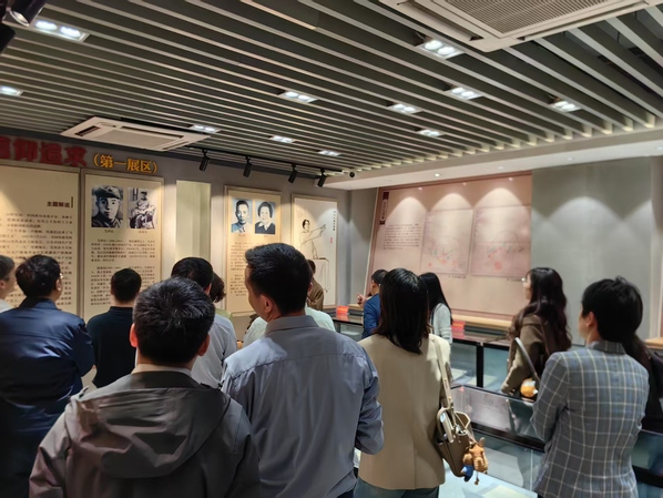 下午14时和15时10分在讲解员的带领下,参观人员分为两批分别参观了“信仰追求”“战争考验”“自身建设”“使命担当”“党旗下的南大”五个展区的党史资料。