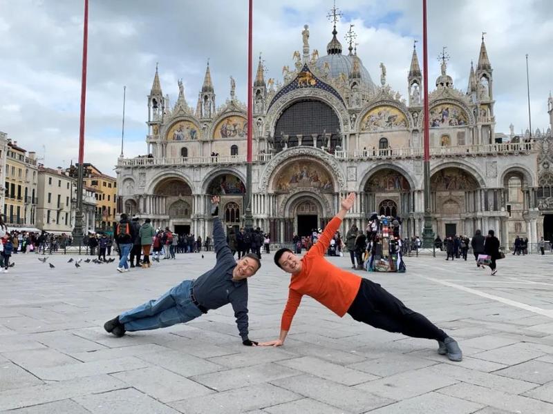 在威尼斯大学访问期间,与朋友在圣马可广场俯卧撑