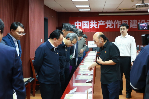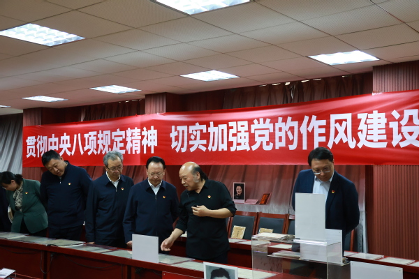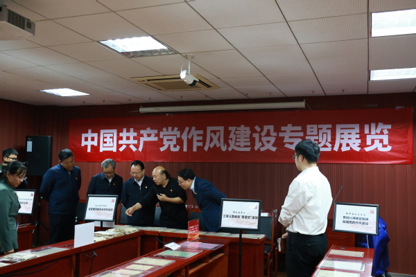 2025年4月7日下午4时,av片 党委书记谭铁牛、校长谈哲敏及领导班子全体成员到av片 中共党史资料馆进行八项规定读书班学习。在曹大臣教授的带领下,领导班子一行人参观了中国共产党作风建设专题展览。