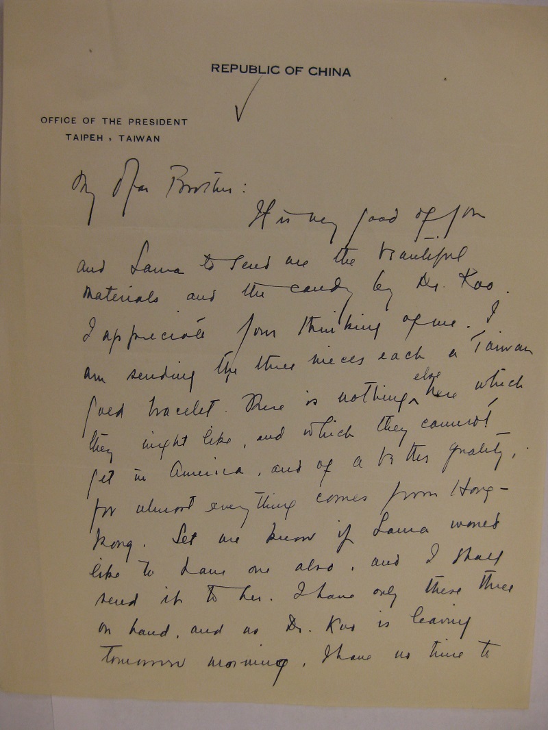 是2014年10月22日上午。吴老师叩门而入,毕业后我在校部机关工作,一直不曾见过吴老师,我几乎认不出他来:高高的个子,穿蓝色制服,戴蓝色的毛线帽子,直观的印象是脸色明显缺少血色,但吴老师说话底气很足,语言表述特别清晰。我看过吴老师写的回忆文章《南园八号》,其实吴老师至少在1949年5月就是中央大学历史系的学生,后因肺结核在南园八号休养了较长一段时间,后通过手术治愈。吴老师那天来告诉我两件事情,一是他把二号新村的房子卖掉了,准备到无锡亲戚家安度晚年(吴老师没有子女),他写了一个报告,希望他到无锡以后,看病的发票能回学校按规定报销;吴老师还说他有一千多册书,想捐给系里。闲谈中,吴老师说到他参与张宪文老师组织编撰的五卷本《宋美龄文集》,说,在宋美玲的书信中,有些英文书写比较潦草,翻译时容易出错,他是如何矫正的。此后,我与同事谈及此事,大家都异口同声地说,吴老师的英语水平确实非常高。