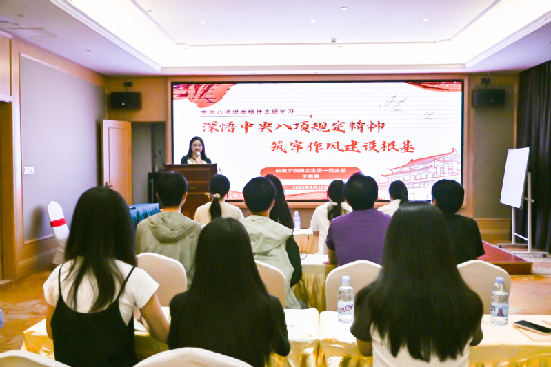 随后,支部书记王恩惠为大家上了一堂题为“深悟中央八项规定精神,筑牢作风建设根基”的生动党课。王老师以《习近平关于加强党的作风建设论述摘编》文本为基础,结合中央纪委国家监委宣传部与中央广播电视总台联合摄制《铁规矩硬杠杠》视频资料,详细解读了中央八项规定的具体内容以及加强党的作风建设的重要意义。她结合个人工作实际,表示将改进工作作风、注重调查研究,在实际行动中落实中央八项规定精神。同时,她也要求党员们注重将八项规定的精神融入到日常工作和生活中,做到内化于心、外化于行,切实发挥党员先锋模范作用。