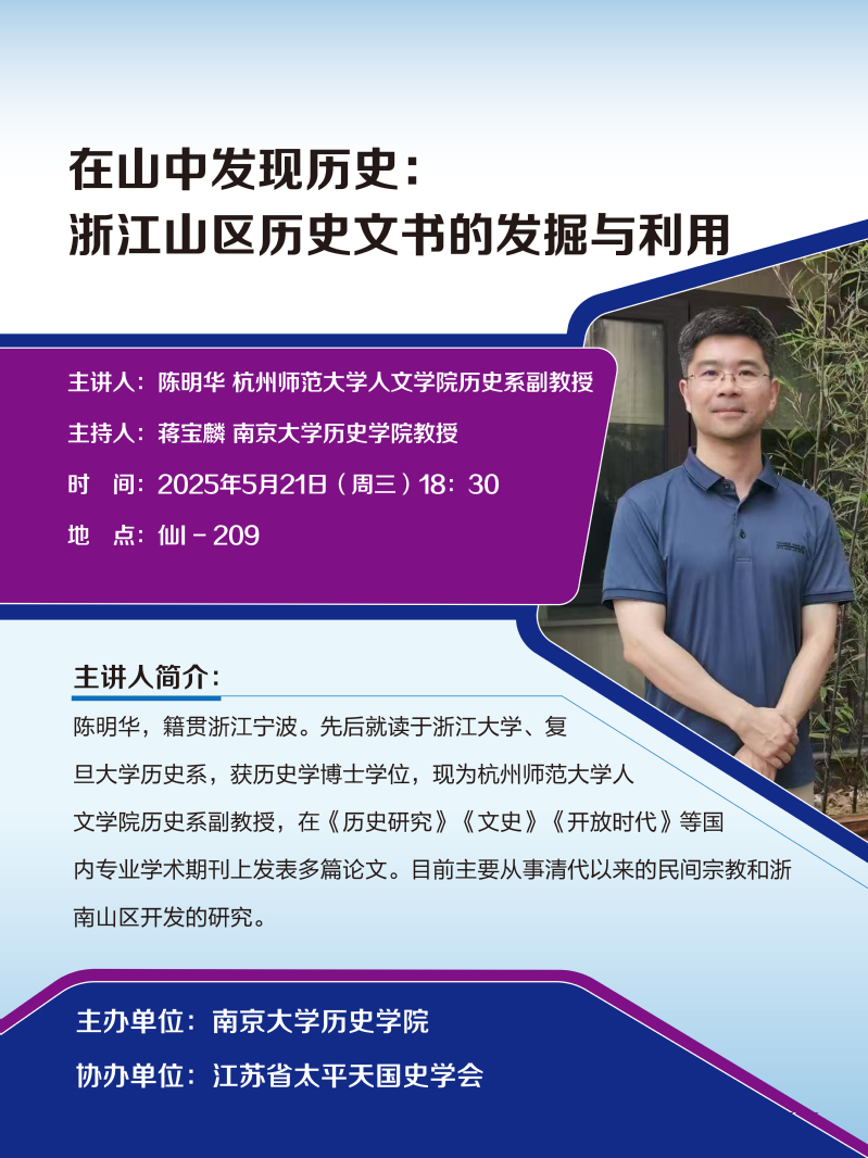 讲座预告 | 在山中发现历史:浙江山区历史文书的发掘与利用