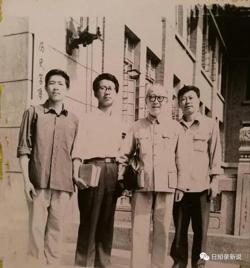 韩儒林教授时任历史系主任。记得第一次见面,是在本系七八级新生开学典礼上,韩先生上台致辞。就在这次讲话中,我第一次听到韩先生说出那句流传于史学界的名言:“板凳宁坐十年冷,文章莫叫一字空。”后来很多年,看到有文章说这句话出自范文澜,而我第一次听到确实是韩先生说的。作为本科生,我们受教于韩先生的机会不多,但有一件小事给我印象很深。1981年春季,郑州大学历史系秦佩桁教授来南京参加学术会议,他提出要拜访一下韩先生,会务组安排我陪同前往。当时韩先生住在青岛路的独门院落内,与副校长范存忠教授合住一栋小楼。当我们来到青岛路韩先生住所时,韩先生打开院门迎接,但却不在家里会客,执意请客人一同走到西南楼三楼历史系元史研究室,然后落座交谈。是家中会客不便?还是觉得不够正式?为何已到家门口还要移步研究室?记得我当时颇为不解。1982年毕业前夕,我和郑会欣、王琛两位同班同学,曾一起和韩先生合影留念。今天看着这张照片,不由得心生感叹:“三十八年过去,弹指一挥间!”