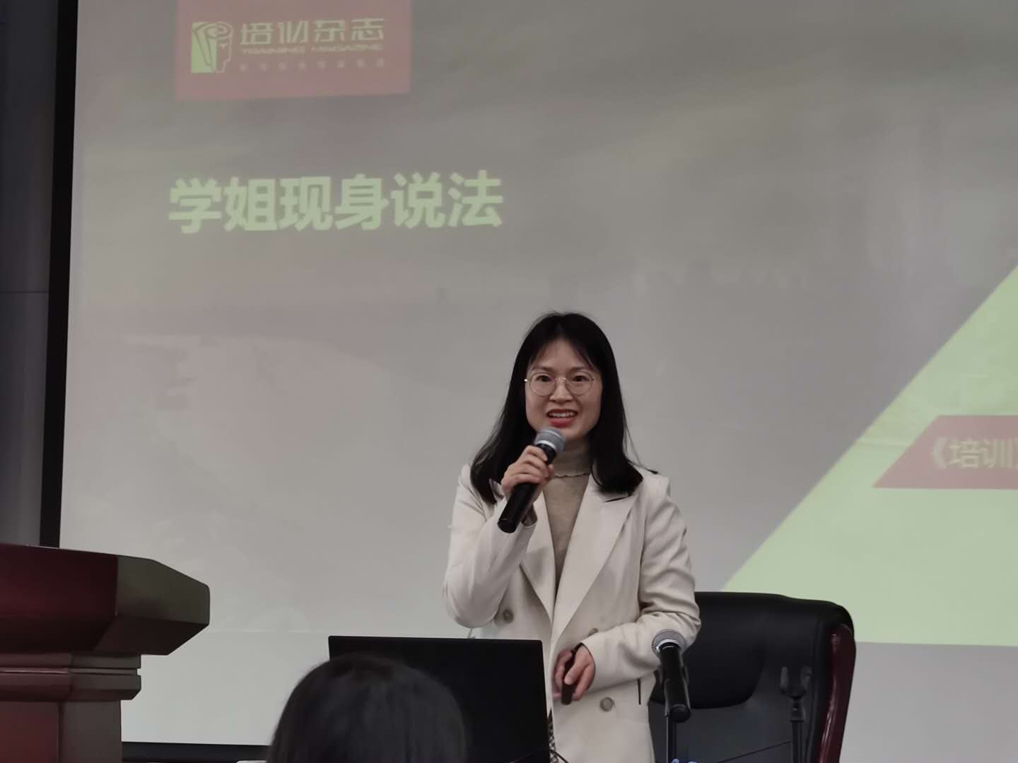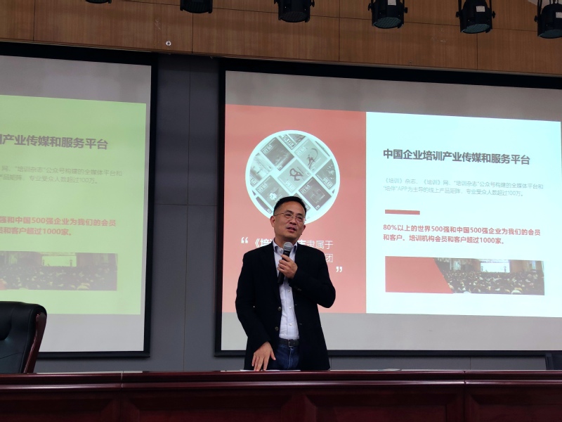 在av片 研究生会就业实践部副部长苗润雨的主持下,学院1988级院友、《培训》杂志创始人兼杂志社主编、中创营投资公司董事长朱伟正,人力资源部经理周晋等杂志负责人分别展开宣讲,在介绍《培训》杂志基本情况与招聘信息的同时,为在场同学提供了文科就业培训。