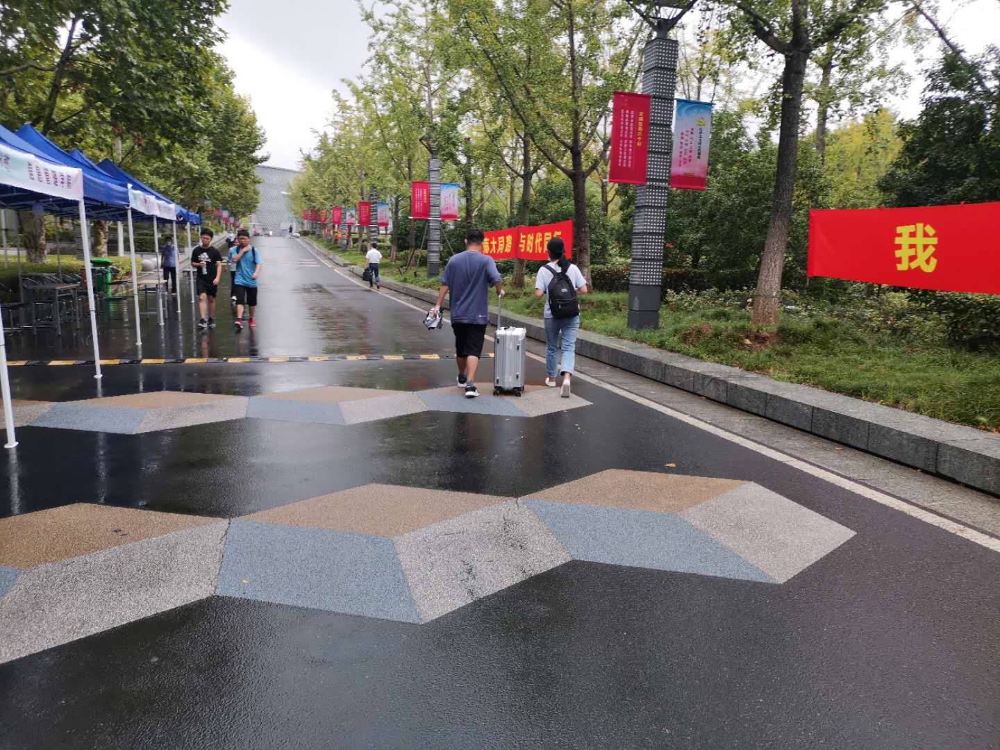 9月1日是新生报到的第二天,午后暴雨袭来,部分未带伞的新生在院楼办理完报到手续后在大厅沙发处等待雨停。志愿者担心等待时间过长影响新生们的宿舍入住程序,便开车将这些新生陆续送往各自的宿舍楼。他们进宿舍前的微笑,就是对忙碌着的志愿者最大的肯定。即使阳光普照,也有一张张笑脸在等待;即使斜风细雨,也有一把把雨伞在路上;即使日落西山,也有一句句贴心的话语在耳畔……不管新生来的多早或多晚都有迎新工作人员陪伴着他们。