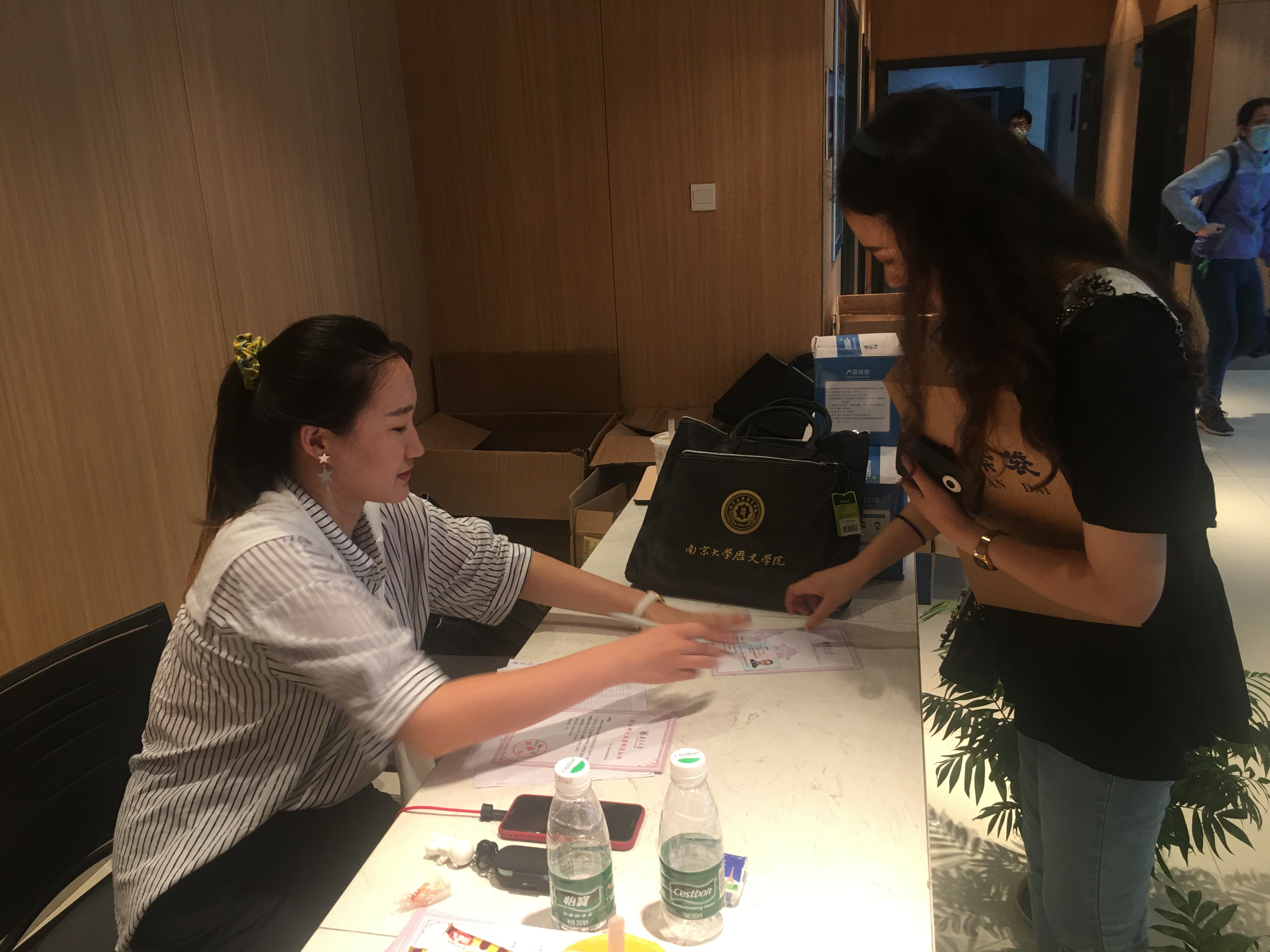 8月31日清晨,一缕缕阳光唤醒了沉睡的校园,当第一个新生走进av片 校门时,迎新工作正式开始。校门口历史学院接新人员,在展台前向新生发放校园卡并且告知接下来的流程,向新同学介绍学校、专业情况以消除新生面对陌生环境的紧张感。匆忙之中,也有一些有趣的小故事:一位新生在报道结束后,曾路过工作台3次,每次都会确认所有手续都已结束;有的新生把自己的手机等物品遗忘在工作台上,还好志愿者反应够快,及时追上;突然其来的暴雨打断了工作,志愿者们反应迅速,“抢救物资”,以便后续迎新……