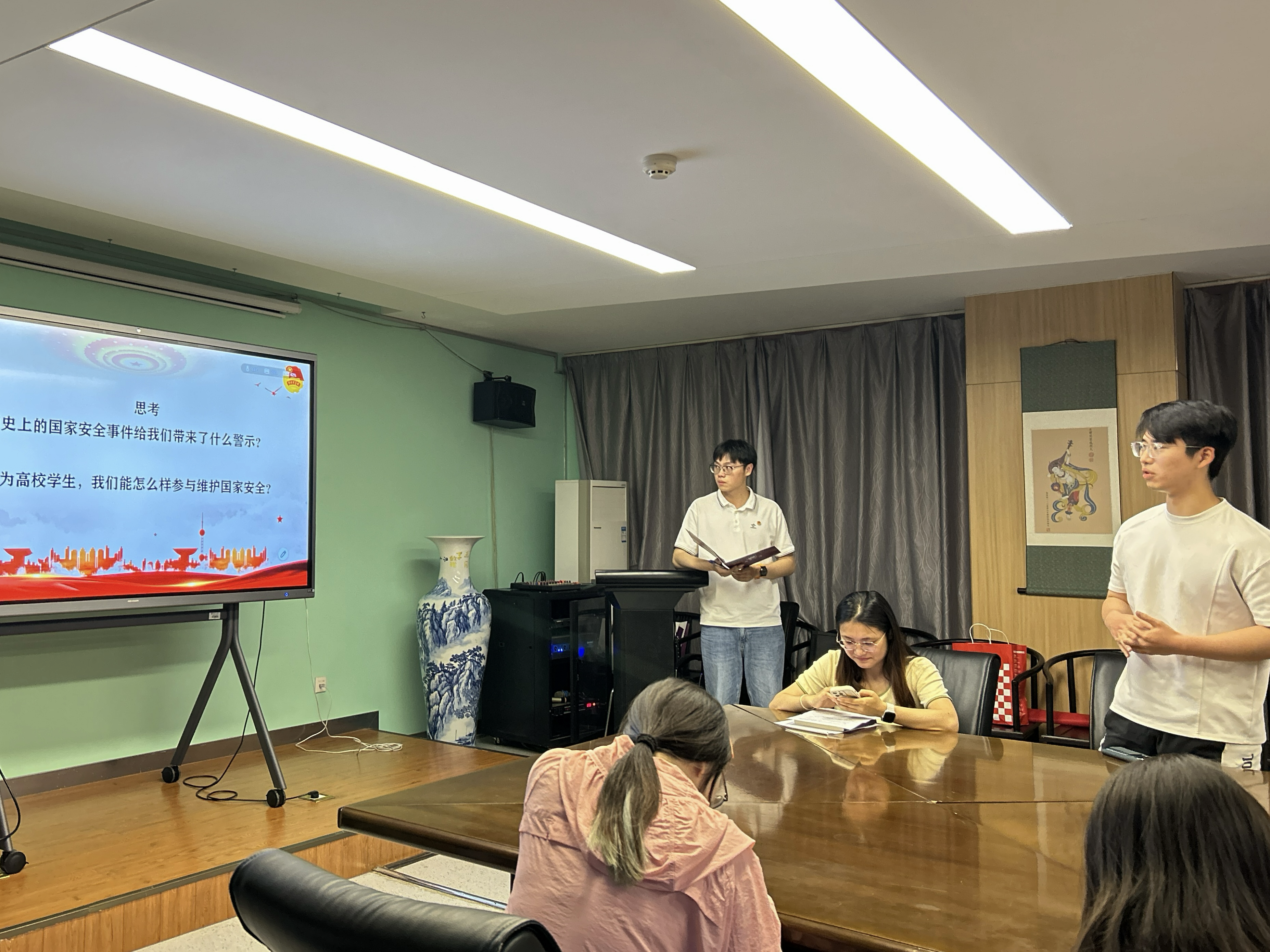 活动第五项,支部组织“国家安全与我们”为主题的互动讨论环节,重点围绕历史事件的安全警示与高校学生参与维护国家安全两个方面展开。同学们紧扣历史经验与青年责任,结合现实思考积极发言,围绕国家安全的重要性展开深入交流,展现了高校青年坚定的使命意识与责任担当。