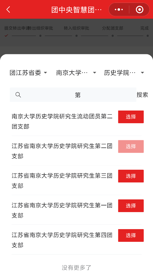 转出组织使用北京、广东、福建系统的2025级研究生新生团员,登录线上系统手机端,在“我的”菜单栏中,点击“我的组织”“转至外部系统团组织”,“转出原因”选择“升学”,根据研究生录取专业,进行组织名称搜索和选择。