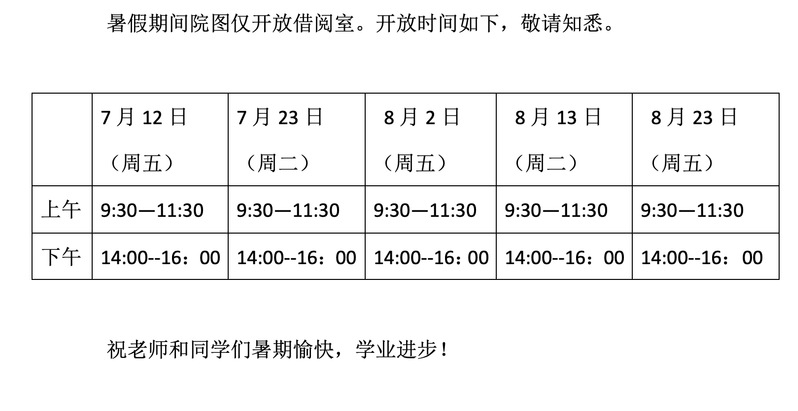 2024年暑假院图值班安排