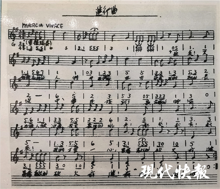 从歌词上看,《义勇军进行曲》只有83个字,春秋笔法,言简意赅。开篇是激励人心的号召,起来,不愿做奴隶的人们。把我们的血肉筑成我们新的长城,血肉筑成新的长城,用生动形象的比喻,表示决心之坚定、意志之顽强。然后是触及心灵的警醒,中华民族到了最危险的时候,每个人被迫着发出最后的吼声。最危险的时候,最后的吼声。两个最后让人感到万分的紧迫。接着,连续三个起来,发出战斗的呼唤,吹响进军的号角。2016年,习近平总书记在庆祝中国共产党成立95周年的重要讲话中指出,我们党团结带领中国人民进行改革开放新的伟大革命,“实现了中国人民从站起来到富起来、强起来的伟大飞跃”。这三个“起来”,可以说既是历史的巧合,又是历史的必然。最后,“我们万众一心,冒着敌人的炮火,前进,冒着敌人的炮火,前进,前进,前进,进!”生动展现了中华儿女在抵抗外来侵略的浴血战斗中的不怕牺牲、奋战到底的民族精神。“前进”连续三次,我们仿佛看到炮火纷飞的战场上华夏儿女义无反顾地冲锋陷阵。聂耳在谱曲时,对原词作了些细微的修改。原来是“冒着敌人的飞机大炮”,改为“冒着敌人的炮火”,修改后更准确,也更简洁上口;另外,原来是“前进,前进,前进”,聂耳在最后加一个“进”字。更加铿锵有力、意味深长。