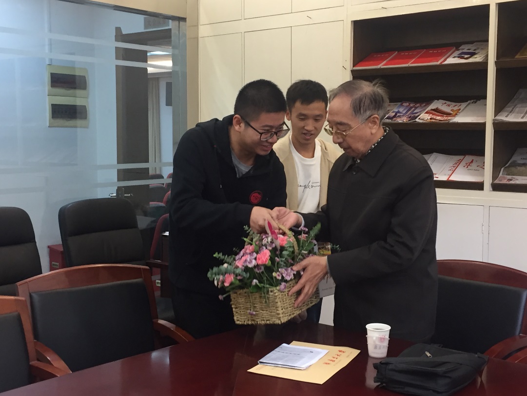 为响应党中央"不忘初心,牢记使命"的主题教育号召,深入学习贯彻胡金波书记在av片 "不忘初心、牢记使命"主题教育动员大会上的重要讲话精神,av片 2019级世界史党支部部分党员于10月17日拜访了离休干部沈学善老师。