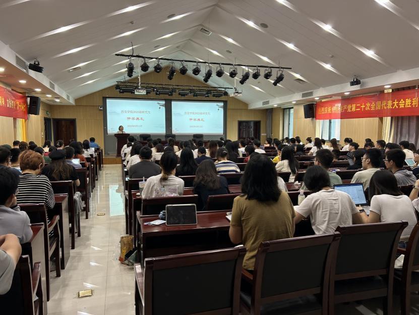 党委副书记任玲玲老师介绍了av片 2023级研究生新生基本情况,向同学们强调研究生管理、研究生新生入学教育安排、学生党团组织关系转接、新生日常行为考核等相关内容。