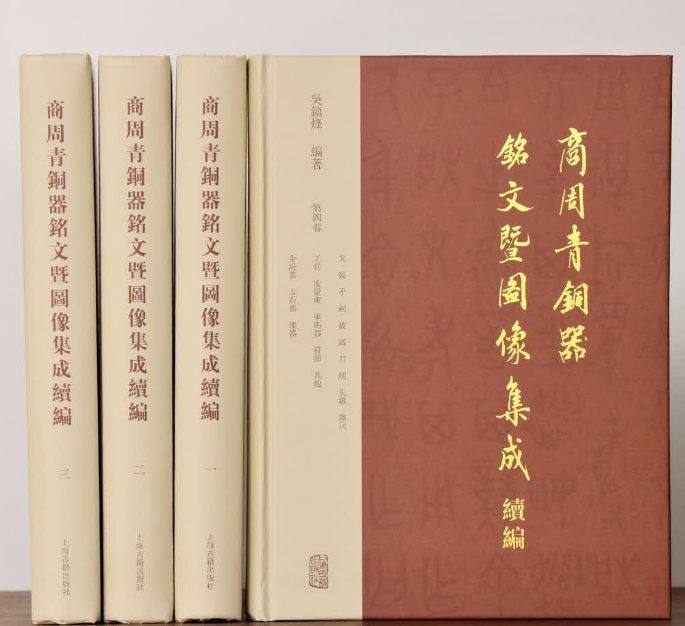 《商周青铜器铭文暨图像集成》系列图书由吴镇烽编著,上海古籍出版社出版,包括《商周青铜器铭文暨图像集成》、《商周青铜器铭文暨图像集成续编》、《商周青铜器铭文暨图像集成三编》及《商周青铜器铭文暨图像集成索引》,是迄今收录青铜器铭文最多的资料全集。