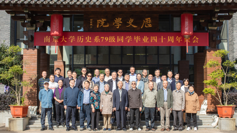 由于79级在鼓楼校区学习生活度过四年宝贵时光,老班长李小敏提议鼓楼校区必须去看一看,因此同学们报到住宿安排在鼓楼南苑宾馆。第二天上午同学们重游av片 鼓楼校区,回忆大学生活,并分别在校大门口、西南楼前、北大楼前合影留念。鼓楼校区结束后大家乘车到仙林校区,车览仙林校园,然后在av片 会议室与老师汇合,一起参观党史馆、在院会议室叙旧、到历史楼前师生一起留下珍贵的合影。
