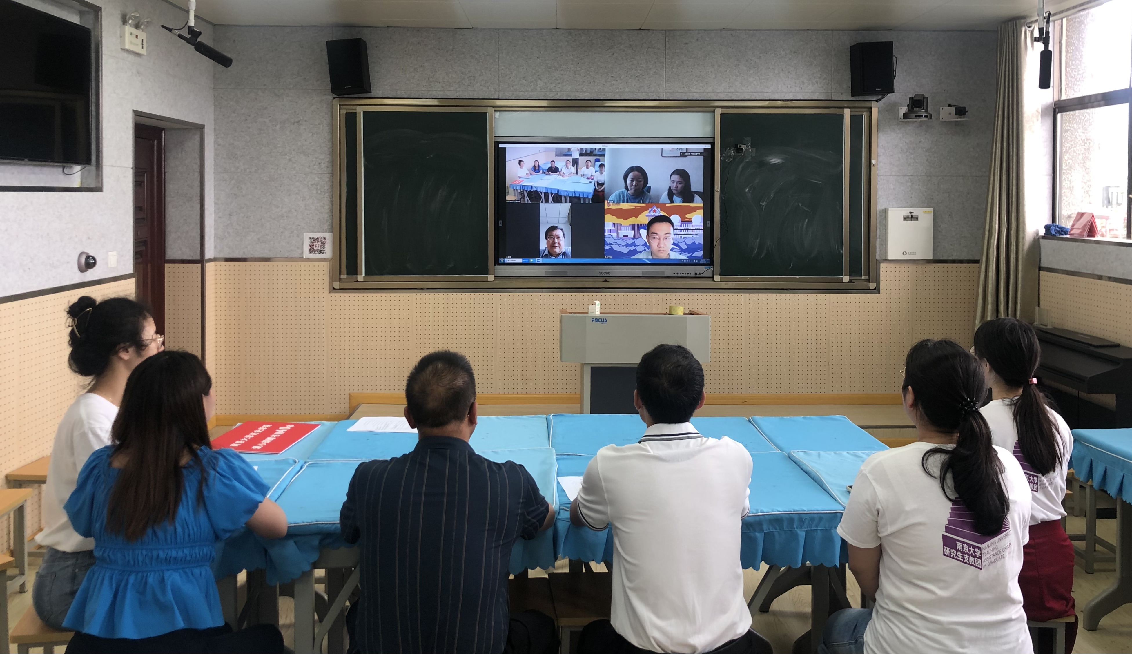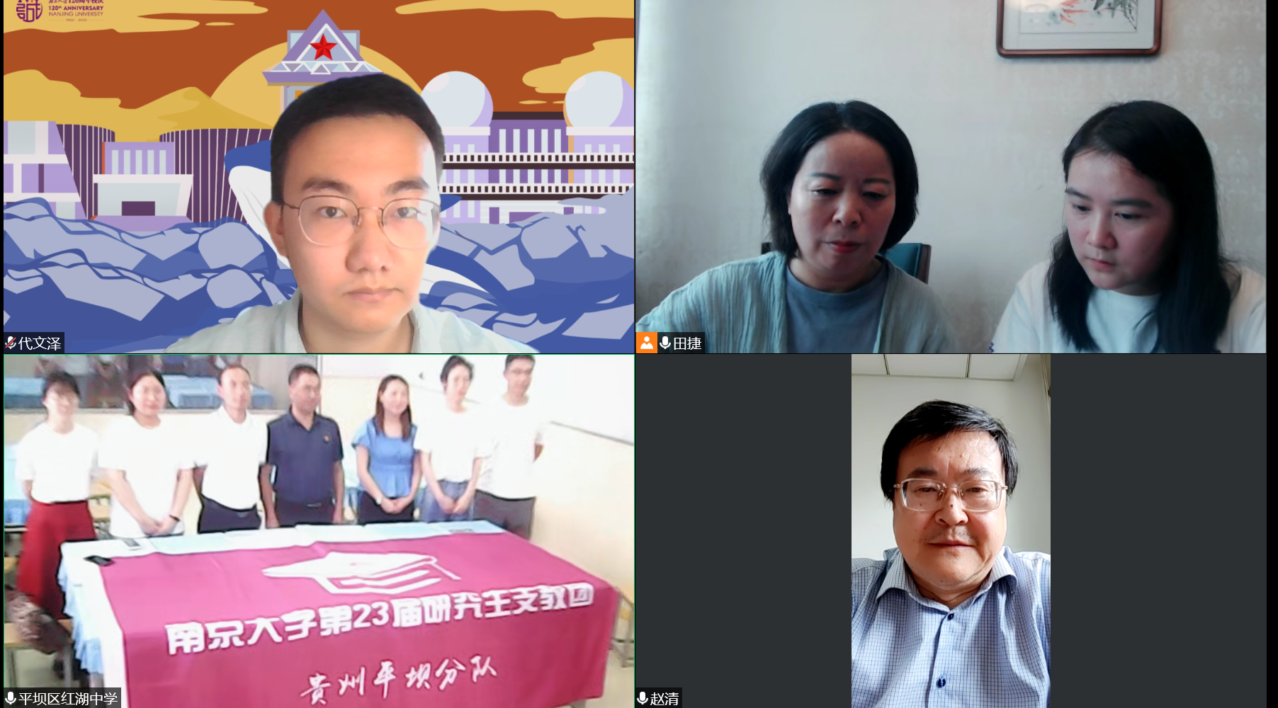 7月4日中午,av片 领导与学生代表,红湖中学校领导与研究生支教团志愿者齐聚线上,举行了简短的捐赠仪式。av片 党委书记赵清、党委副书记任玲玲、本科生党支部书记田捷与支部党员代文泽参会;红湖中学校长吴静、党支部书记王大建、团总支书记李显霞与研支团志愿者周诗玥、高豫来、唐陈嘉翊、林澍参会。