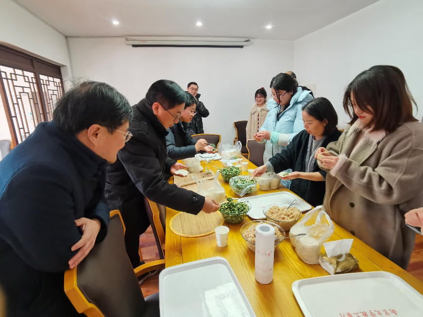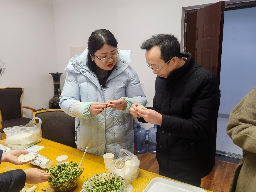 于2024年1月10日下午在学院231举办包饺子活动,学生在其乐融融的包饺子氛围中与教师面对面交流。院党政领导班子、研究生德育导师、辅导员、班主任与学生们共同参与。