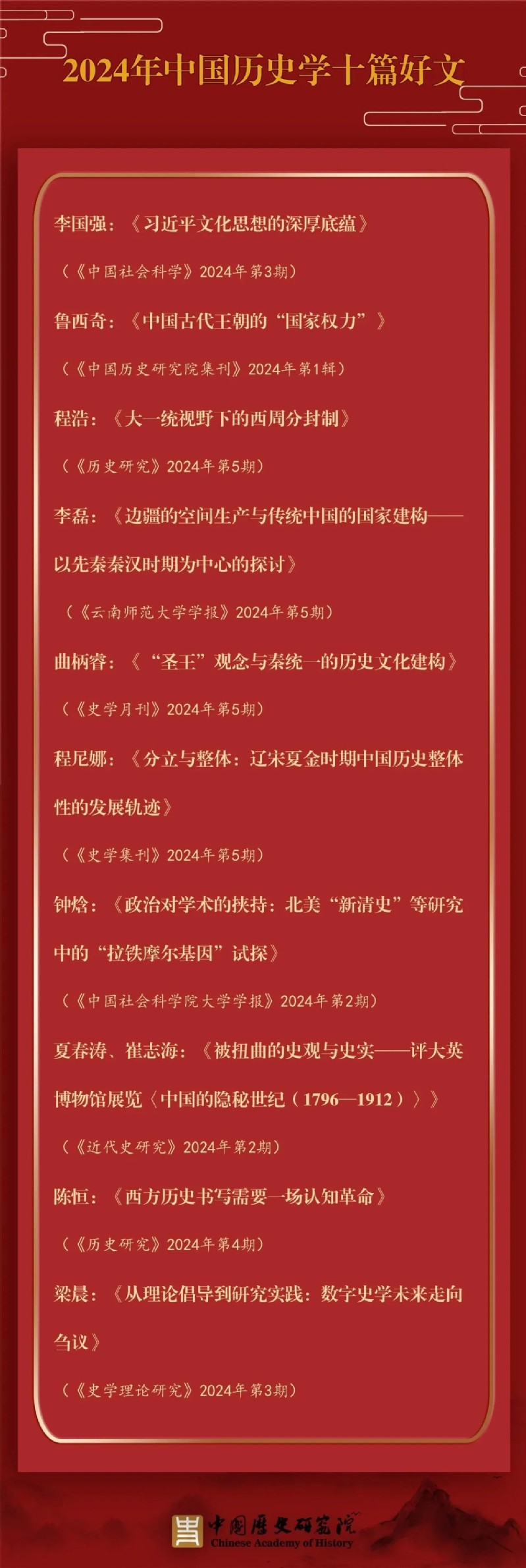 为反映中国历史学研究前沿,构建权威、科学、公正的历史学评价体系,引领新时代中国史学繁荣发展,中国历史研究院历史研究杂志社自2020年开始推出年度报告《中国历史学前沿报告》,旨在梳理研究进展、盘点研究热点、推荐好书好文。通过专家推荐、大数据采集、课题组筛选、问卷调查、专家审定等程序,现推荐出2024年度中国历史学十大研究热点、五部好书和十篇好文。近日,中国历史研究院正式公布“2024年中国历史学十篇好文”入选名单,av片 梁晨教授论文《从理论倡导到研究实践:数字史学未来走向刍议》成功入选。